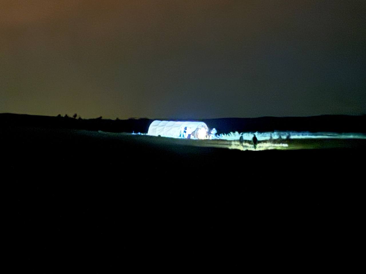Временный лагерь на месте встречи биоспутника (Оренбургская область, ночь с 18 на 19 сентября 2025 года).