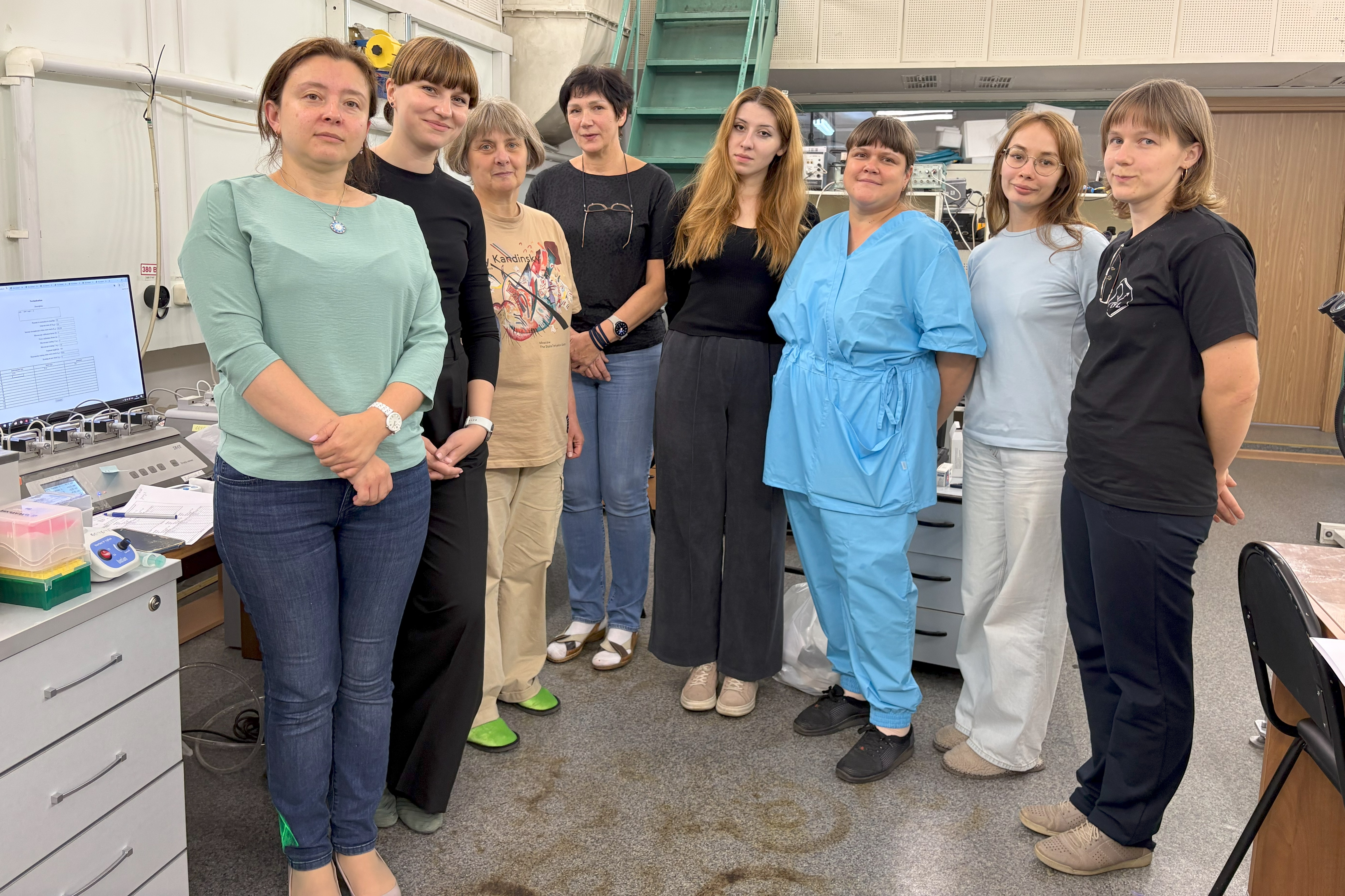 Исследователи регуляции тонуса сосудов: Д.К. Гайнуллина, Н.А. Швецова, О.Е. Фадюкова, О.С. Тарасова, А.А. Дружинина, А.А. Борзых, М.П. Печкова и О.О. Кирюхина. В кадр не попал К.А. Богоцкой (фотографирует).