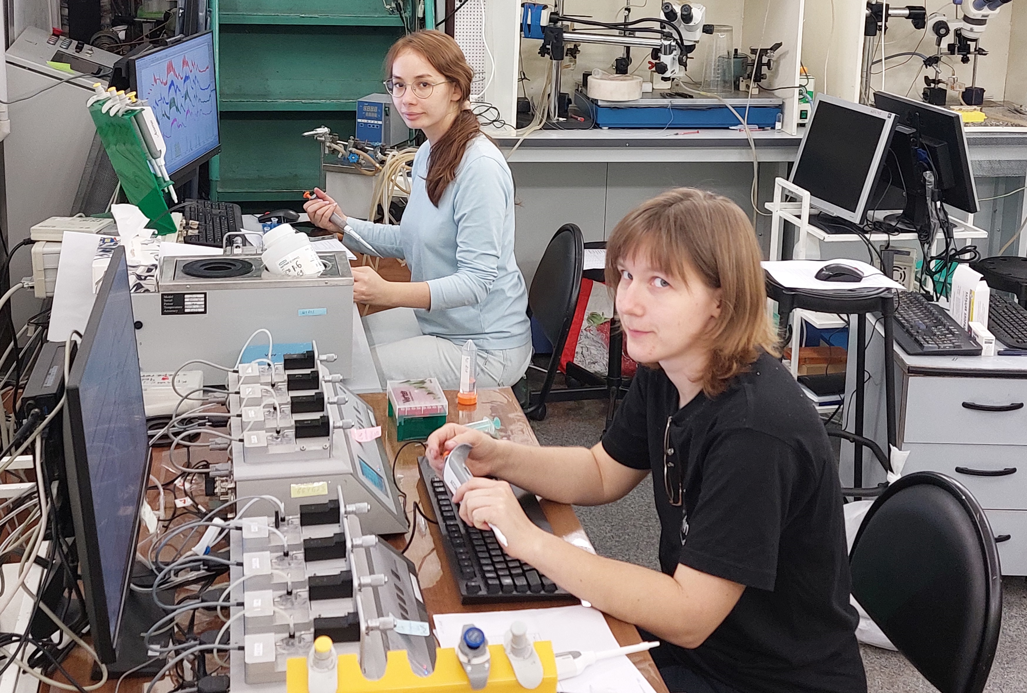 Сердечно-сосудистая система – одна из наиболее подверженных влиянию микрогравитации и космического излучения, однако механизмы полетных изменений кровообращения пока изучены мало. Усилиями А.А. Андреева-Андриевского и его сотрудников у большой группы мышей получены записи сердечного ритма непосредственно во время взлета, полета и посадки. Сейчас сотрудники, аспиранты и студенты двух факультетов МГУ (биологического и фундаментальной медицины) в рамках соглашений с ГНЦ РФ – ИМБП РАН проводят уникальные исследования кровеносных сосудов и сердца мышей, вернувшихся с орбиты. Поскольку главный интерес представляет именно функциональные изменения этих органов, путь от места получения биоматериала до места его исследования не может быть долгим. В связи с этим в ГНЦ РФ – ИМБП РАН временно развернут лагерь научного оборудования, где в ближайшие два месяца будут периодически проводиться круглосуточные эксперименты.